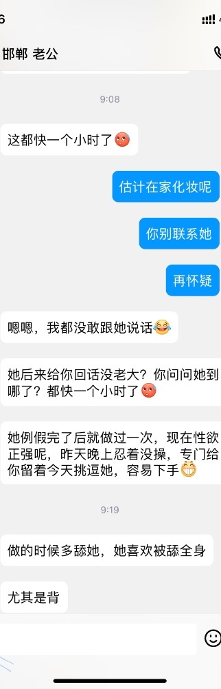 他偷偷拿老婆的手机加了我微信,过了一段时间给她打招呼,就说是可能以前玩探探的时候加的(他知道老婆以前聊过探探),她也没怀疑,慢慢聊的多了,和她挺有共同语言的。不过有一段时间不怎么回我信息了。后来我借口发现媳妇出轨(假的),跟她进入了性话题。开始给她看3p的视频,结果她喜欢看多人的,还幻想被强奸,真是极品哦。后来还跟她聊起了淫妻的话题,他老公也经常跟她说找男人草她。
